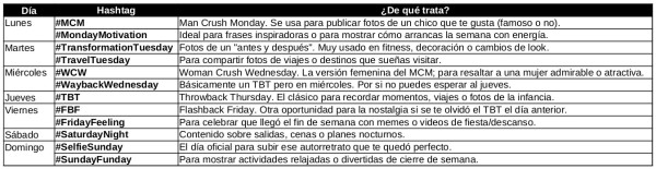 yo recomiendo en sus cuentas de RRSS de marketing usar uno a la semana, el dia que corresponda, pero que no choquen uno con el siguiente, este tipo de TREND sube muchisimo la calidad de la cuenta, personal o comercial y aumenta los seguidores lo que hace que tengan mas intertacciones y posibles clientes!...