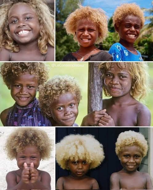 En un lugar del pacifico sur hay personas de piel muy oscura con cabello rubio